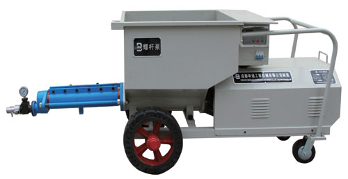 該泵結(jié)構(gòu)新穎、構(gòu)思獨(dú)特;避免了灌注稠漿較困難的不足,使用安全方便、效率高。本機(jī)主要由電動(dòng)機(jī)減速器、輸漿體、增壓蝸桿、增壓定子、測(cè)壓、料斗、電控系統(tǒng)等組成,當(dāng)用于噴護(hù)時(shí),還包括噴射器,其特點(diǎn)如下: