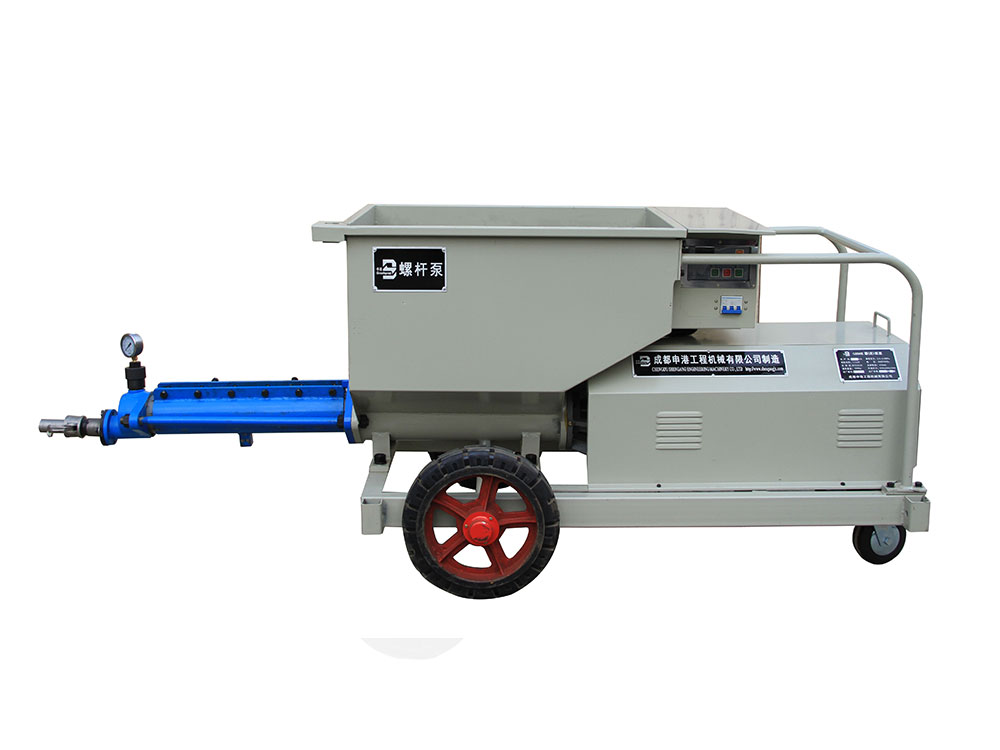 該泵結(jié)構(gòu)新穎、構(gòu)思獨(dú)特;避免了灌注稠漿較困難的不足,使用安全方便、效率高。本機(jī)主要由電動機(jī)、減速器、輸漿體、增壓蝸桿、增壓定子、測壓、料斗、電控系統(tǒng)等組成,當(dāng)用于噴護(hù)時,還包括噴射器,其特點(diǎn)如下: