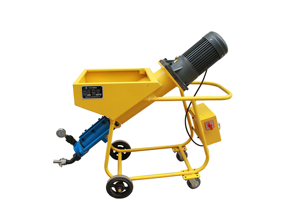 本機(jī)結(jié)構(gòu)新穎、構(gòu)思獨(dú)特;避免了灌注稠漿較困難的不足,使用安全、方便、效率高。本機(jī)由電動(dòng)機(jī)、減速器、料斗、增壓定子總成、注漿管和電氣系統(tǒng)等組成。當(dāng)用于濕噴時(shí),還包括噴射器和空壓機(jī)(用戶可選配),其特點(diǎn)如下: