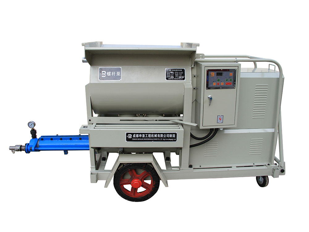 該泵結(jié)構(gòu)新穎、構(gòu)思獨(dú)特;避免了灌注稠漿較困難的不足,使用安全方便、效率高。本機(jī)主要由攪拌機(jī)構(gòu)、增壓機(jī)構(gòu)及電控系統(tǒng)等組成,其特點(diǎn)如下: