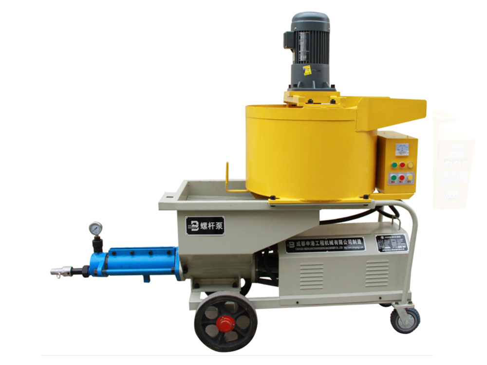 本機由攪拌機構(gòu)、增壓輸送機構(gòu)和電氣系統(tǒng)組成。增壓輸送機構(gòu)由電動機、減速器、輸送螺旋、增壓定子總成、測壓接頭、注漿管等組成。其特點如下: