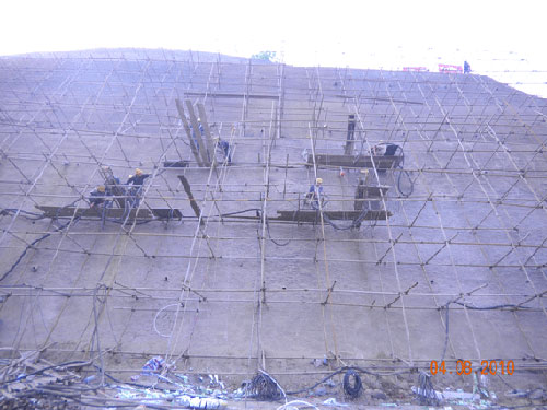 宜瀘渝高速公路南溪長江大橋建設(shè)是宜瀘渝高速公路宜賓段的控制性工程,2008年11月開工建設(shè),預(yù)計(jì)2012年年底建成通車,投資為6.5億元,橋梁總長度1295.89米,主橋?yàn)?20米,寬24.5米,橋梁形式為雙塔門式拉索橋,雙向四車道,設(shè)計(jì)時(shí)速為80公里,其北橋頭位于長江北岸南溪縣羅龍鎮(zhèn)金雞村王家嘴,南橋頭位于長江南岸南溪縣江南鎮(zhèn)和馬家鄉(xiāng)交界處的灌口。圖為GS20EC灌漿泵在錨碇基坑灌漿施工中。